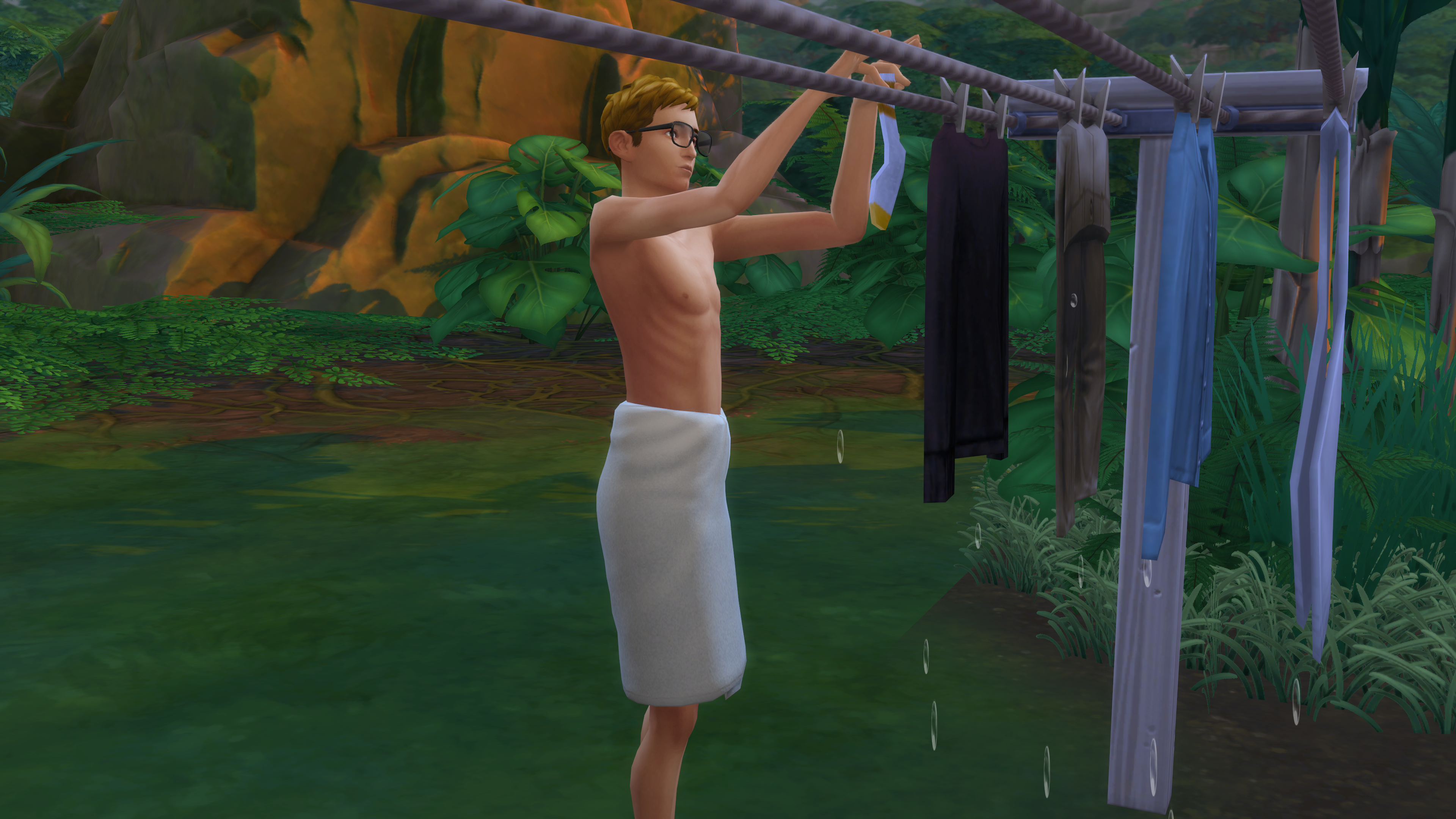 Finally, he scrubbed his clothes in a laundry tub and hung up his clean clothes to dry. Surely he wouldn’t be called out for wearing civvies while his laundry was drying. He’d prefer not to spend the day in only a towel.
