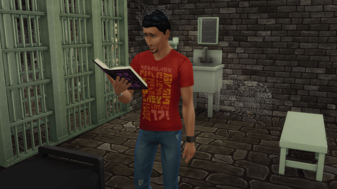 “They aren’t ordinary spiders,” Bella said. Don wondered where in the world “ordinary” spiders lived — he was pretty sure he’d never seen one in Oasis Springs before, just at the Labs — but then, at FSL — “The webs seem to dissolve the metal bars. Look to your left. There’s a small hole where I nudged the web.” Don looked, and sure enough, there was a hole. He decided he didn’t want to get too close to a spider that had steel-dissolving powers. Bella showed him how to coax two spiders to his cell bars. Now all they had to do was wait.