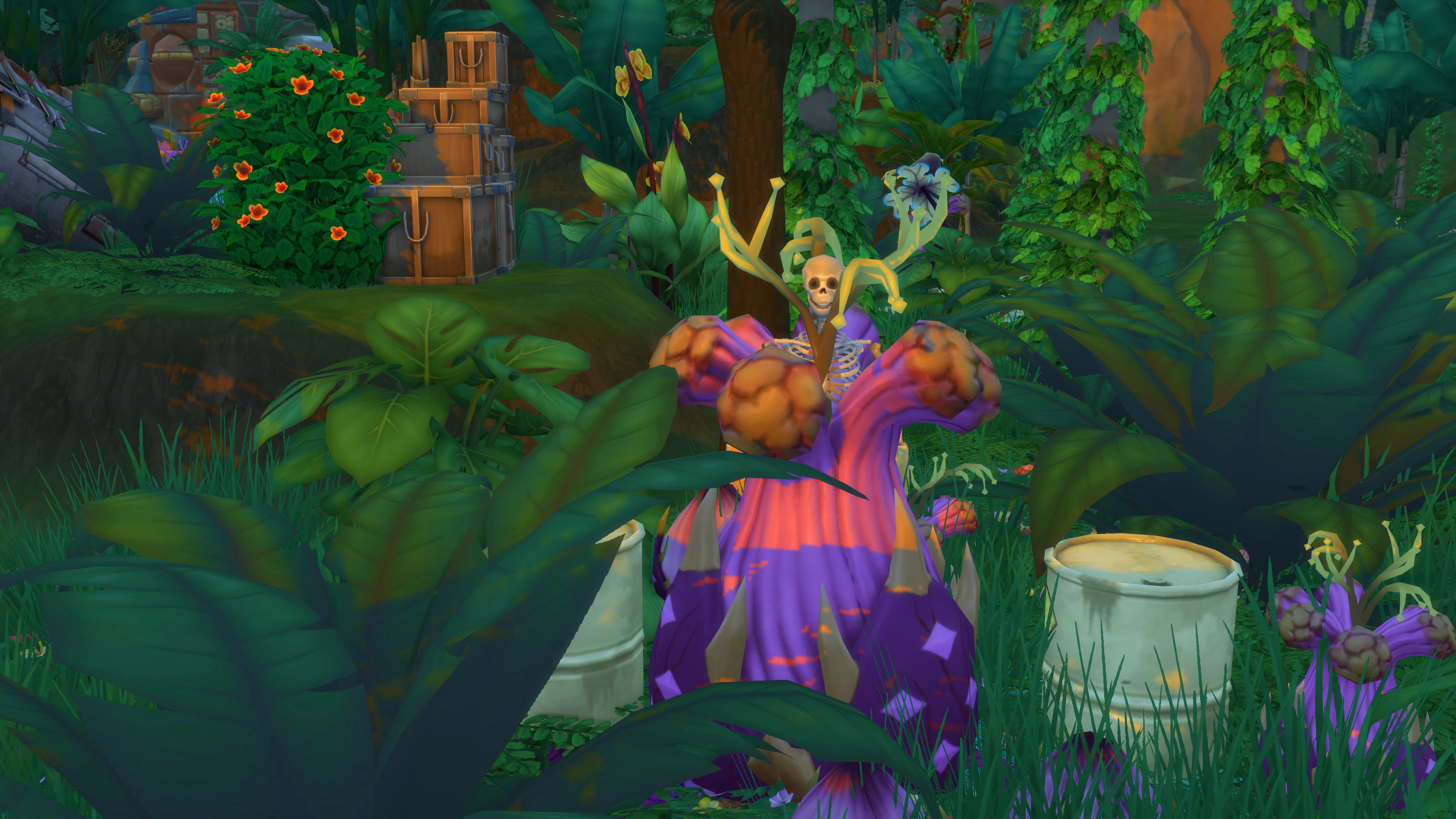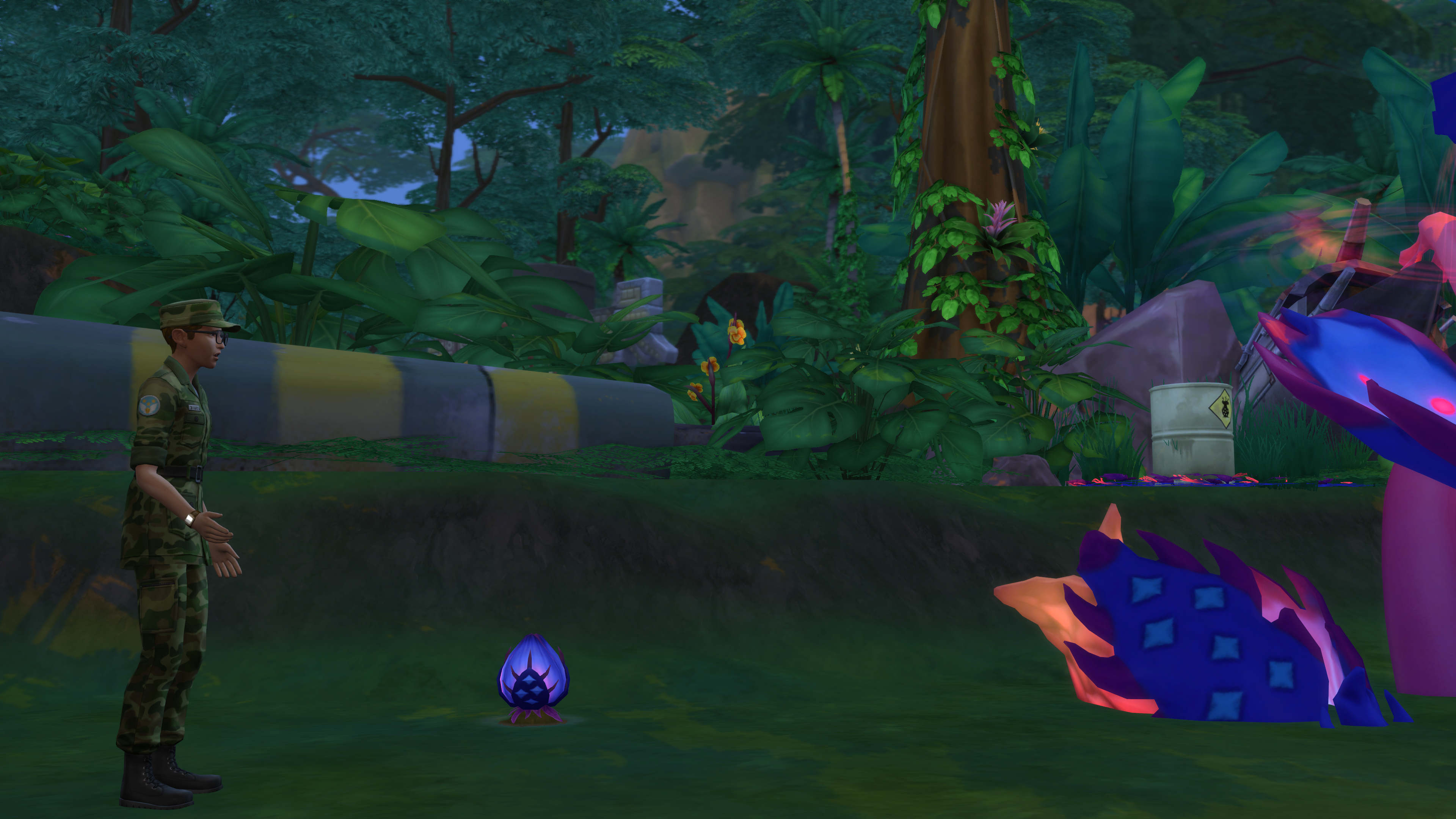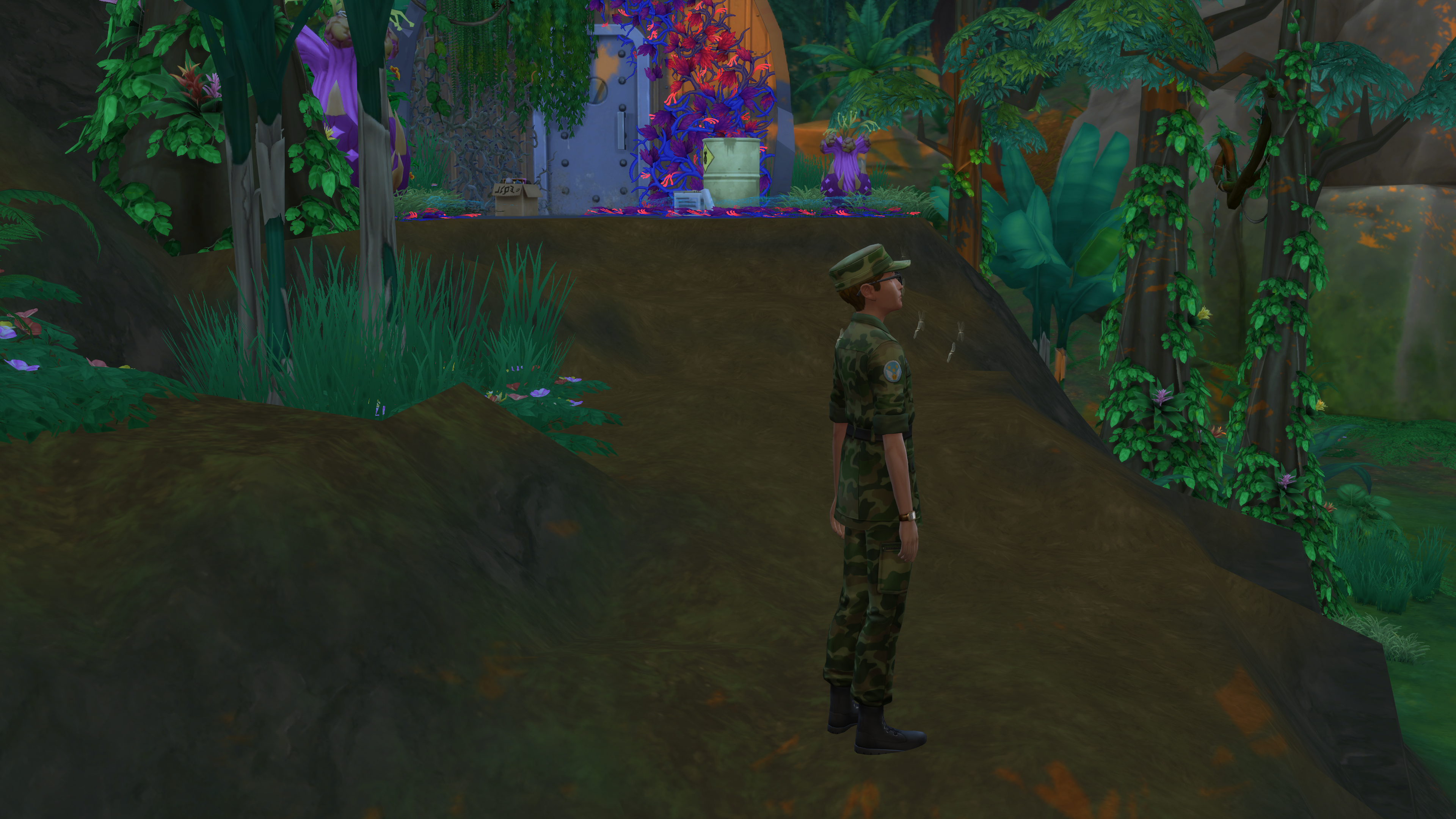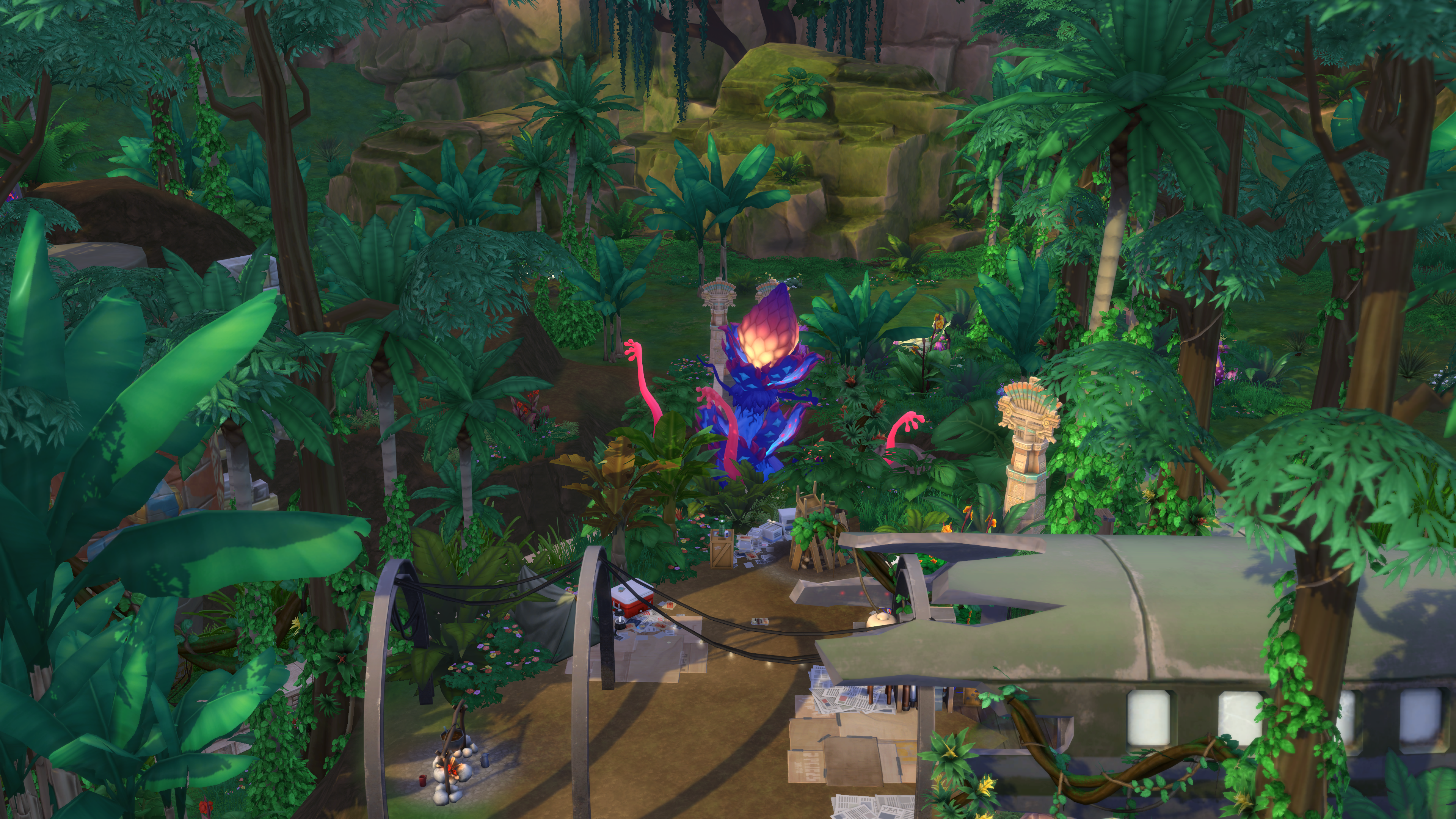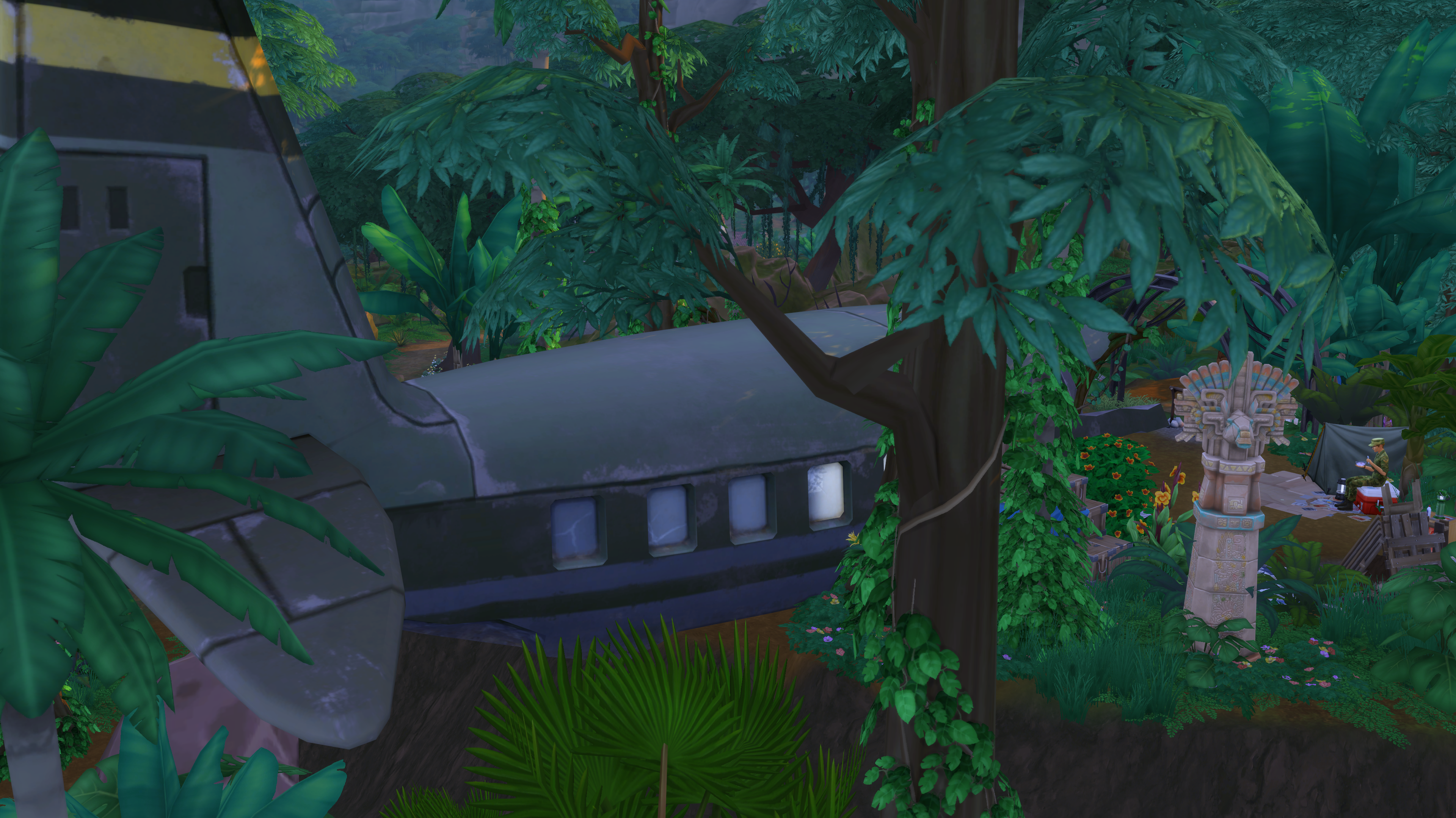 The “Crash Site” lot was built by SimDoughnut, creator of the “Return to the Jungle” challenge. (It’s pretty creepy, so you might want to visit during the daylight hours!)