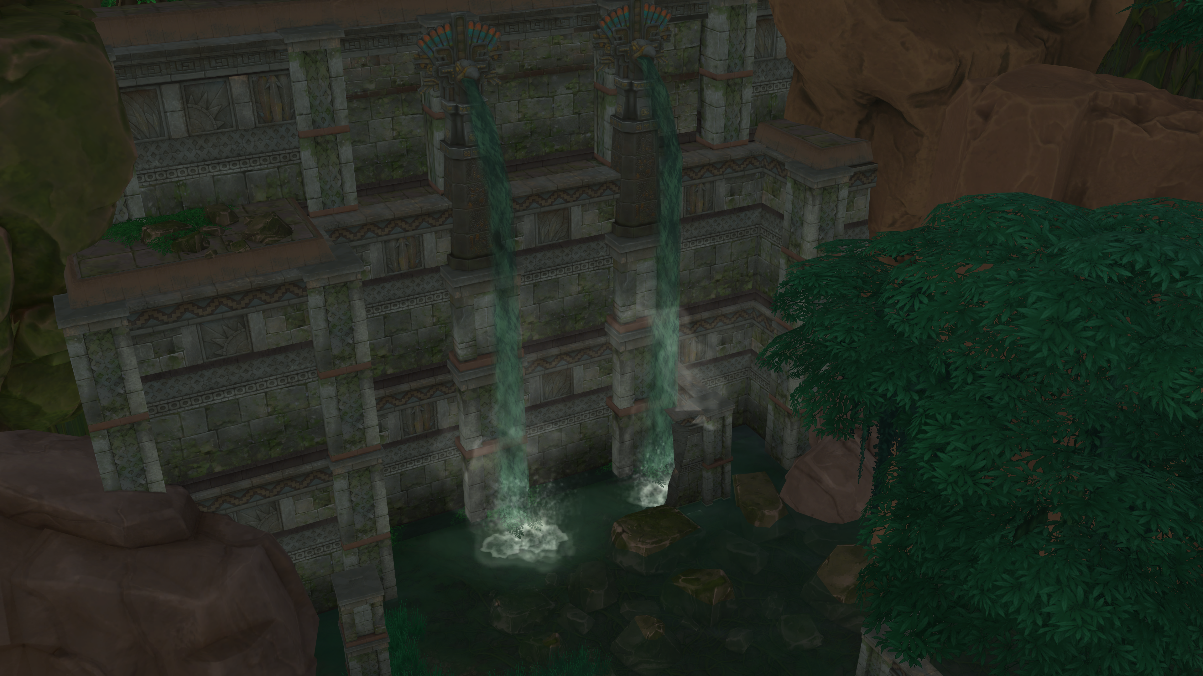 Panting, Ned slowed his pace. The sky was turning purple, and Ned realized it would be dark soon. He pulled vines away from a stone arch, entering a breathtaking spot.