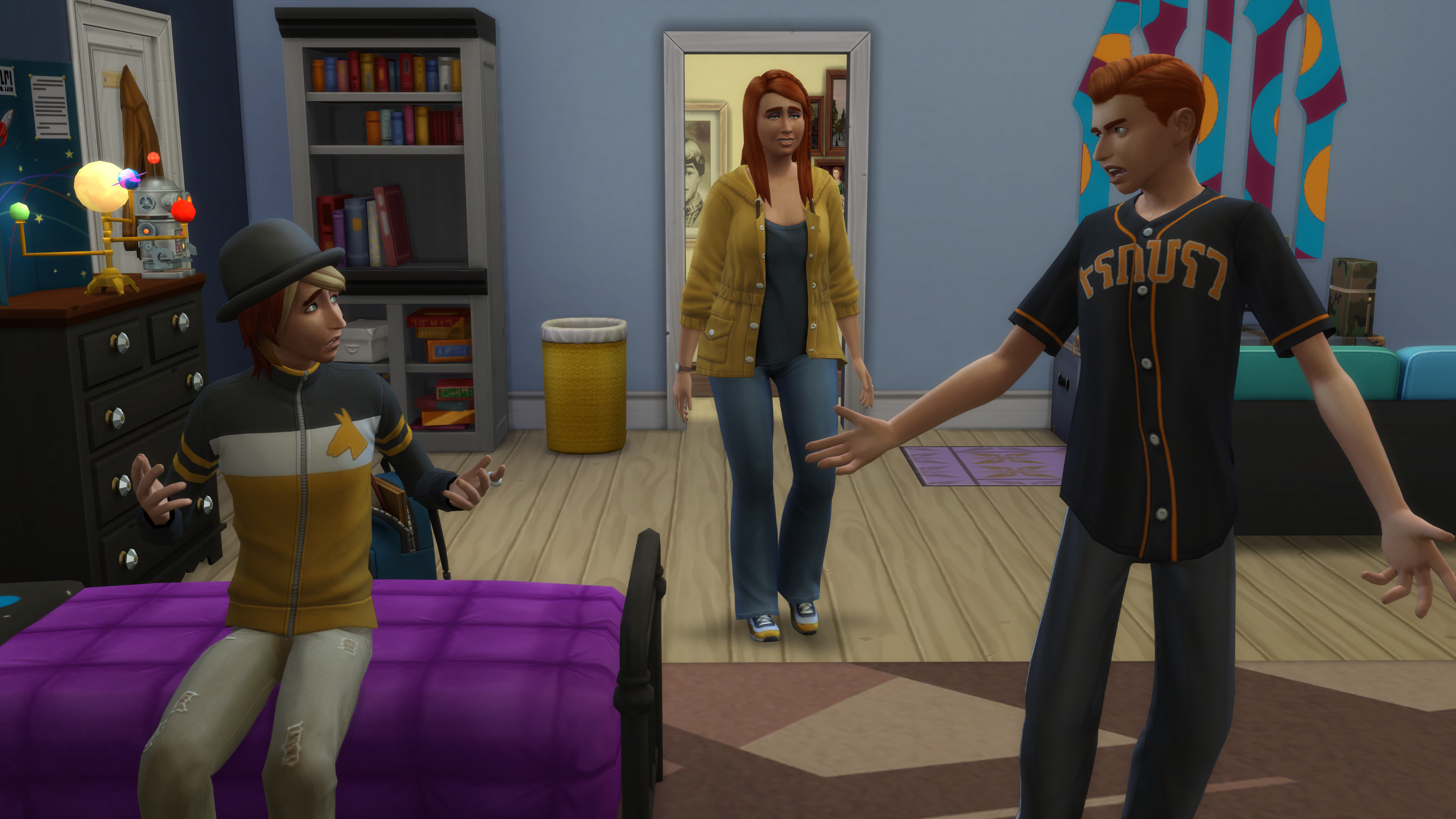 For this short story, I recreated the boys’ bedroom as shown in the Parenthood Game Pack trailer. I used BrazenLotus’ cc/mods for my farmers’ market. Rindle Rose, home to the Peterson’s, and the community lots shown and implied are available on the Gallery (ID: NicerHomesnLots). I really enjoy getting to know the families of Courtyard Lane.
