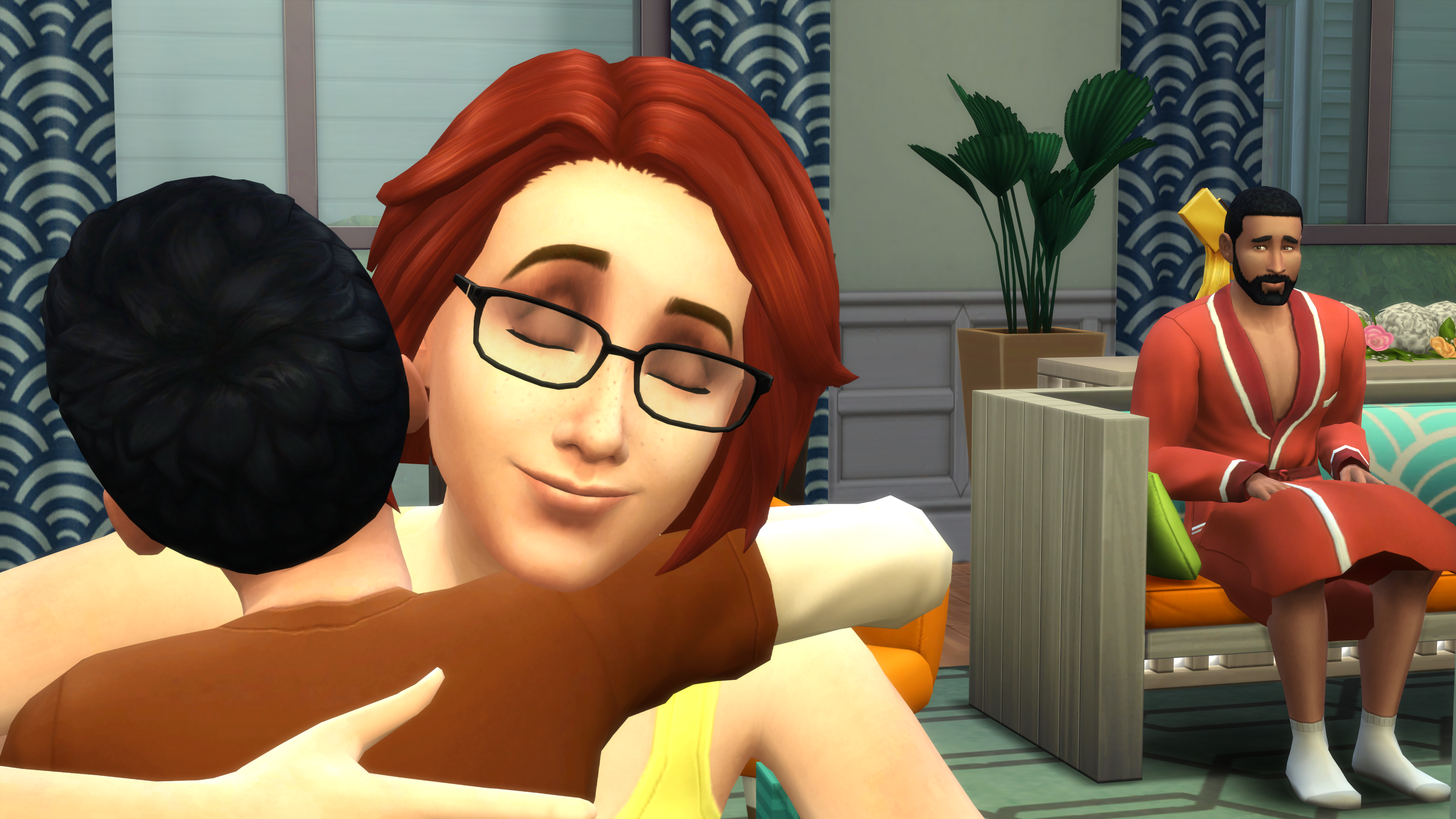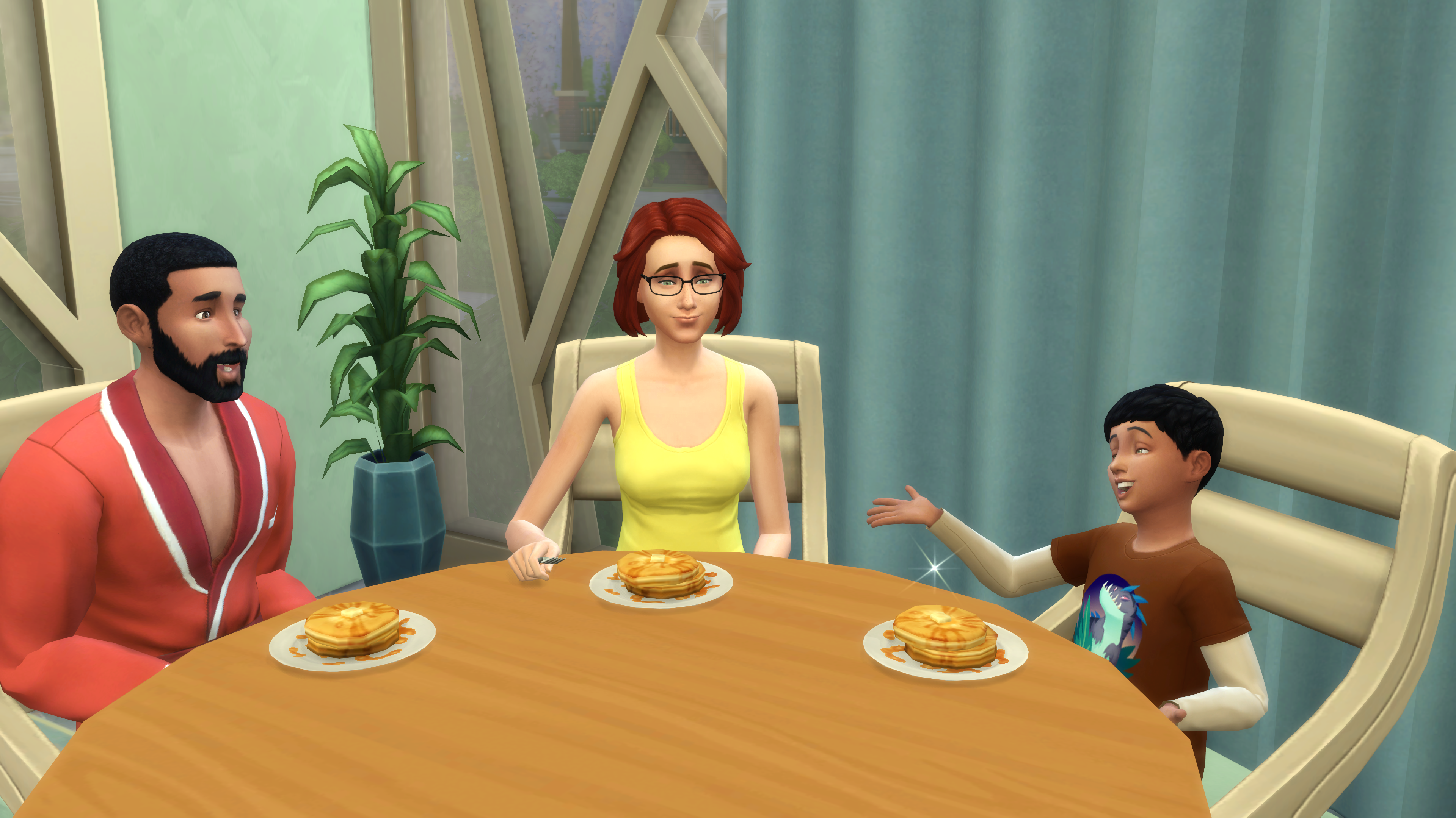 Thank you! They really are sweet when I play them (I downloaded the “new” family from Maxis, and they seem nicer somehow. I think it is because of Iggy/Evan in my game).