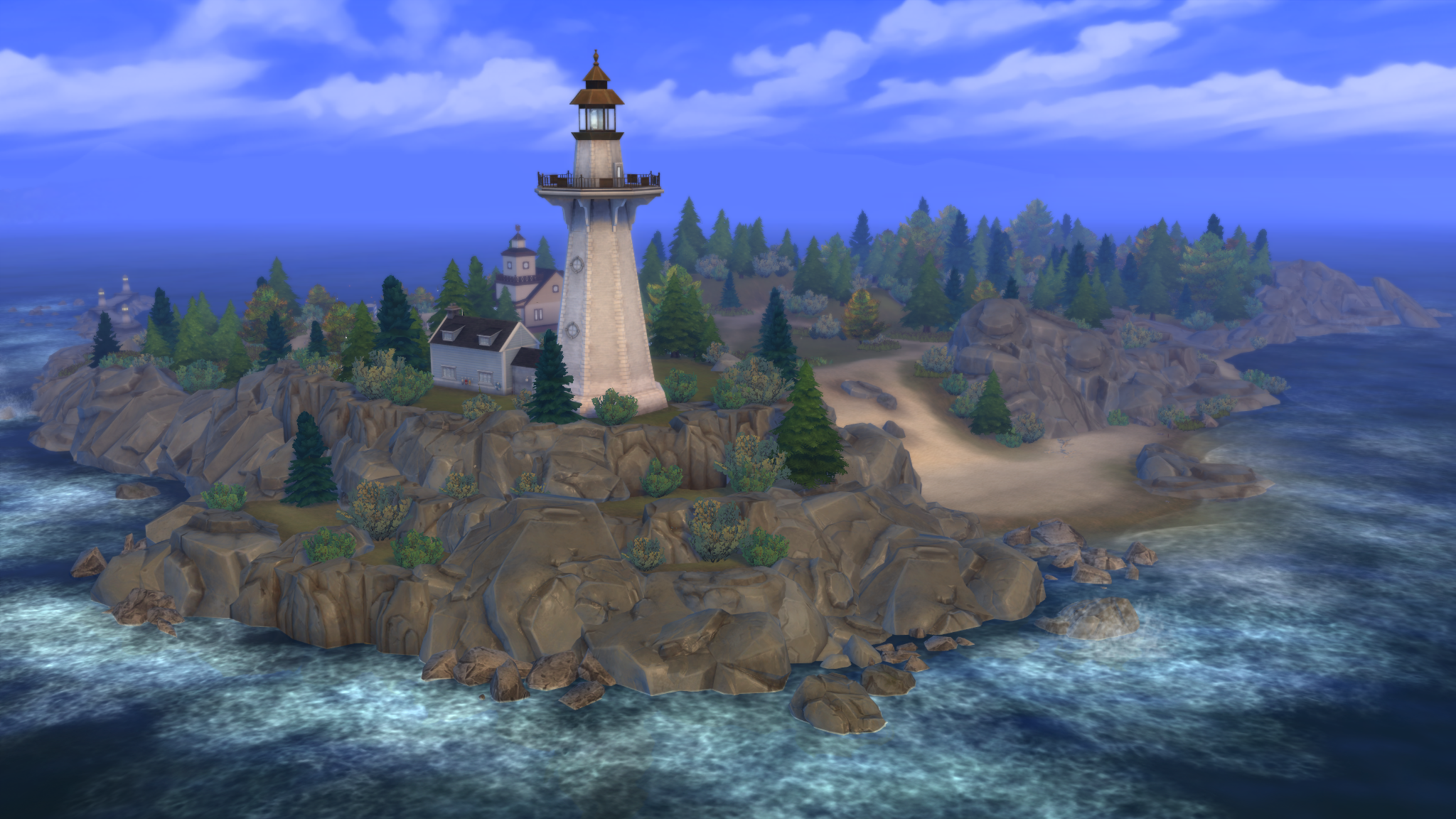 I chose Number 4: “Shipping Container” and the lot on Deadgrass Isle in Brindleton Bay. I’d created a household, “Bernard,” when Cats and Dogs was first released with the story in mind that the Captain was a descendant of the fated Saint Bernard’s captain. While that captain now roamed in his ghostly form, his son had traveled to Brindleton Bay and decided to become a lighthouse keeper so that no more ships would wreck trying to reach the harbor. Fast forward through the centuries, where Captain Bernard, a fisherman, and his son lived on the island. Old Bernie was the last lighthouse keeper, and from there begins this tale.