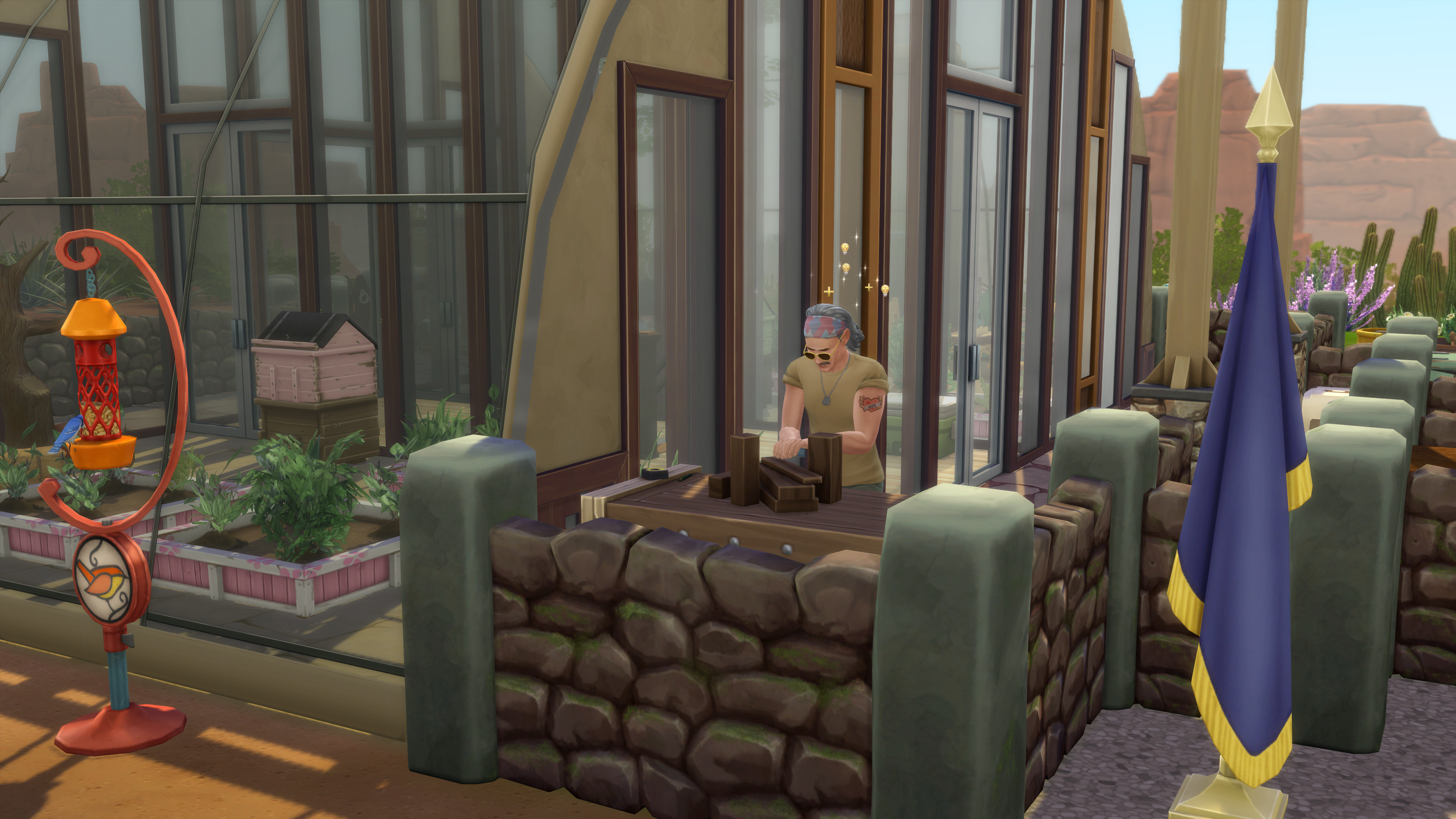 Time passed pleasantly. George found himself enjoying gardening more than he’d expected, and he was glad the architect had made a greenhouse the center of his new home. He spent hours building items in the clear desert air. His garden was growing very nicely, and the biggest problem George worried about was being attacked by a pair of impatient cardinals when he filled the bird feeder.