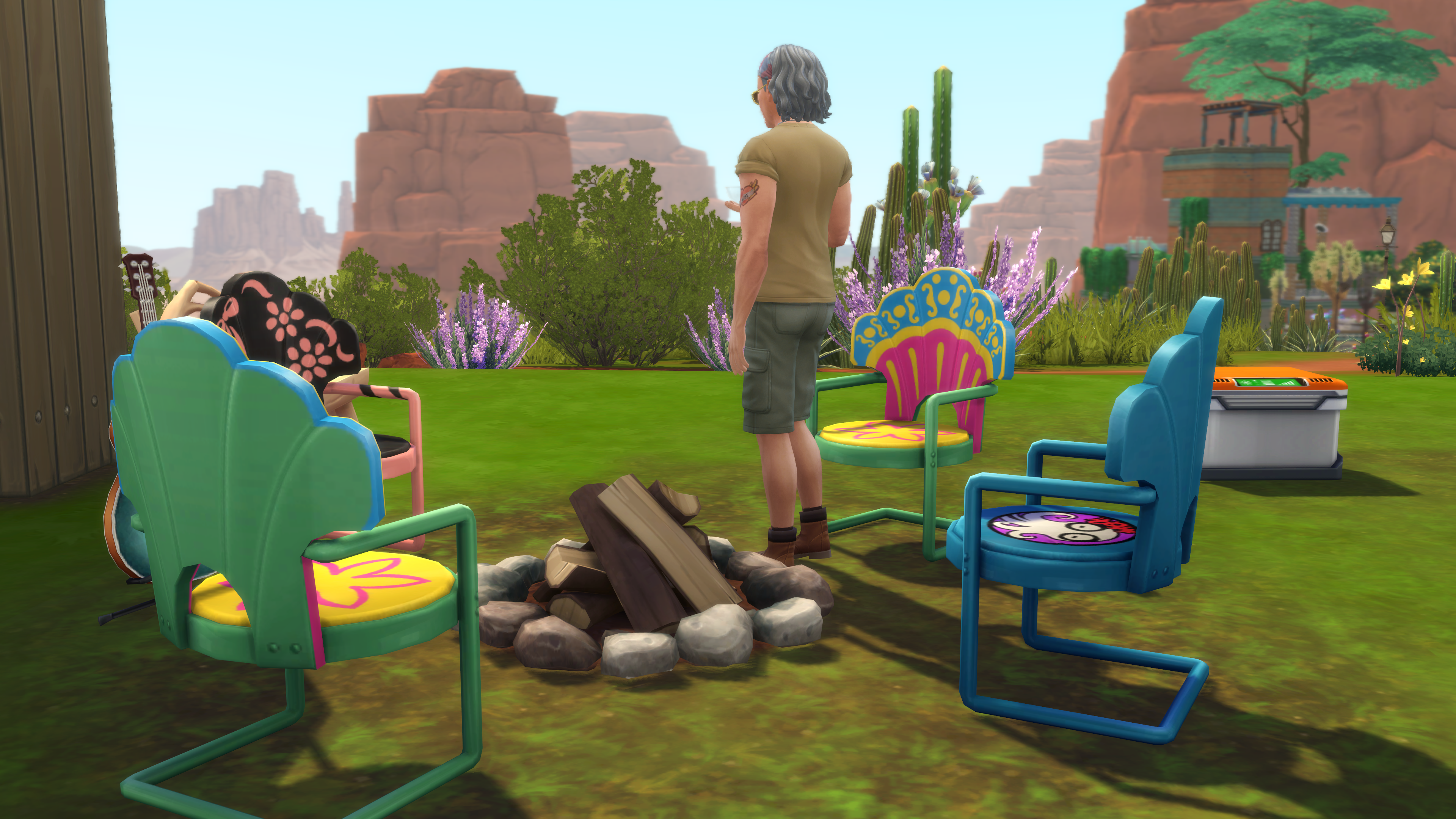 George spent most of his waking hours outside. He cooked the fish he caught in the nearby stream over a campfire and enjoyed the harvest from his garden. His Chillville Cooler from Future Sims Labs provided an endless supply of yogurt, granola, milk, and orange juice and was perfect for quick meals. George didn’t let himself wonder too much about the technology that provided such convenience.