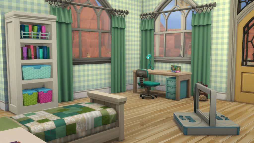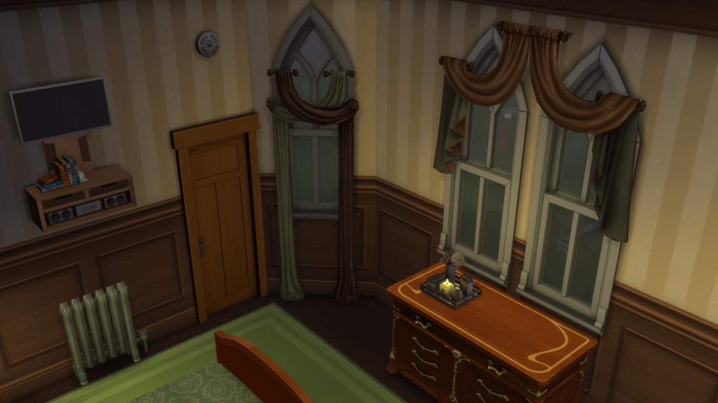 Circe is a workaholic. She puts in long hours at the medical clinic and then long hours at home. One of the features that appealed to her was the unfinished third floor attic. Her husband, Loki, a scientist at Future Sims Labs, agreed. He, too, works non-stop. The couple wanted a place where their children, Atom and Ceres, could learn and grow. Plus, butler’s quarters would be a bonus.