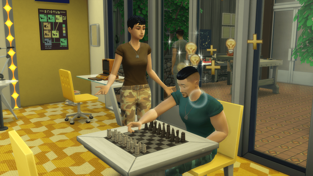 It was endearing to watch sims mentor others, or choose yoga to combat stress.