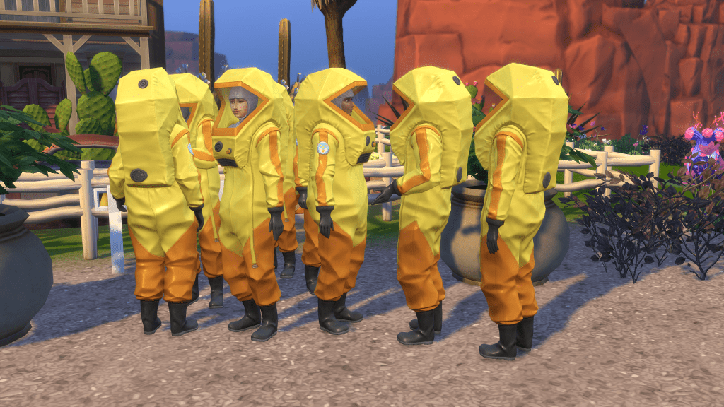 For the first two sim days, I guided their actions and encouraged them. I had to abandon their careers after Day 3 because there are too many off-lot requirements for the Covert Operator career. This made Patrice Britt sad from being unemployed. Apologies, Patrice, but it was for the greater good. (Having a bug planted on her Day 1, made Lexie even more paranoid I think.) After that, for the rest of Spring, I clicked on the “auto solve” when I saw any needs dip into yellow. The rest of the experiment was done using Speed 3 with no intervention except for having Jayceon cook up meals (and then lock the door because the guy would get hungry and grab milk or only prep a meal for himself. Selfish sim! Or someone would run in to cook a grilled cheese). I intervened during the fire by having Haylee Frazier extinguish herself; the rest of the sims either routed for safety or doused her with foam.