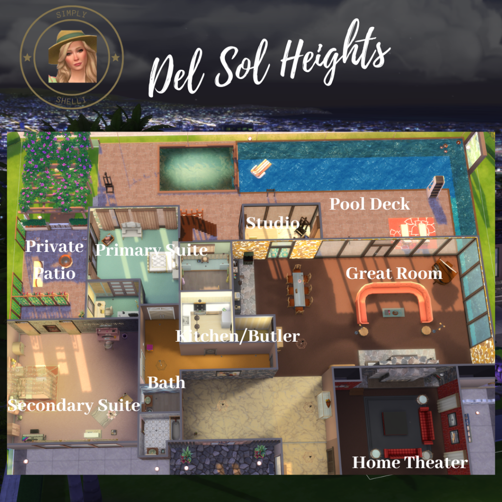 “Del Sol Heights” lot and the Rich family are both available on The Gallery (need to check “modded”) and the tray files (with CAS CC) are also available to download.